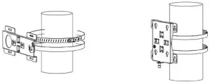 Pole mounting: Straighten out the hose clamp and slide it through the rectangular rings in the mounting bracket, wrap the hose clamp around the pole. After that use a screwdriver to tighten the locking mechanism by turning it clockwise.