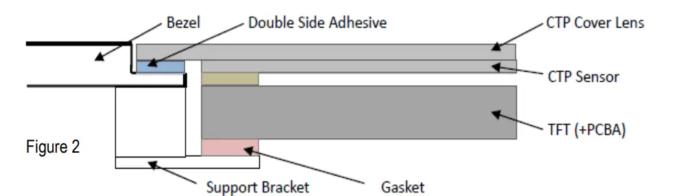 - Gasket should be installed between the bezel and the CTP surface. The final gap should be about 0.5~1.0mm.