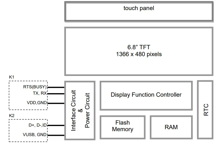 TOPWAY HMT068BTA-C is a Smart TFT Module with 32bit MCU on board. Its graphics engine provides numbers of outstanding features.