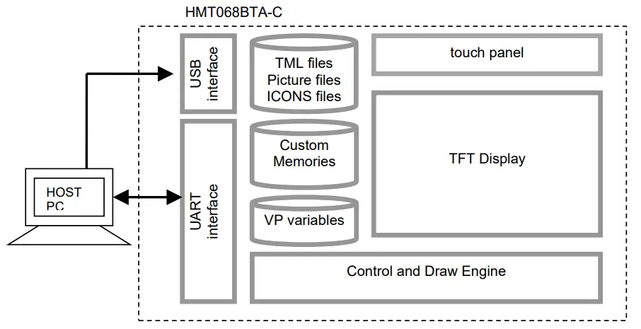 - VP variables memory is inside RAM area, it provides real time access via UART by the HOST or display onto the TFT by TML file.