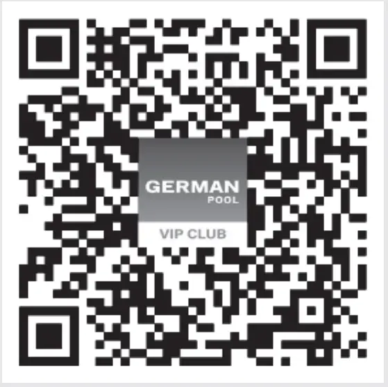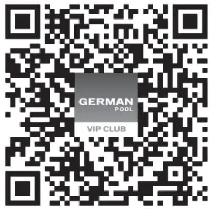 (Scan the QR Code on the left) - Visit our VIP App and register online: www.germanpool.com/warranty