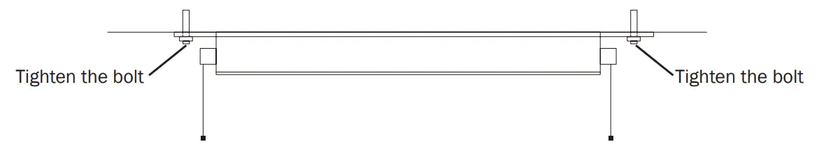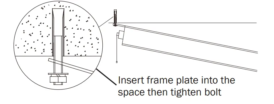 - Remove the left and right end covers of the product, and insert one end of the main unit’s frame plate into the 5mm space of the expansion anchors (between the upper and lower bolts), then tighten up the lower bolts to secure this side of the frame plate.