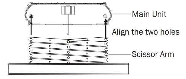 - Install one side of the scissor frame to the main unit and tighten the screws.