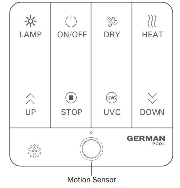 - Stand away from this product before pressing the UVC Button; if this product is installed on the balcony ceiling, close the curtains before pressing the UVC Button to activate UVC Sterilization Function; if this product is installed in a room, leave the room and shut the door before pressing the UVC Button to activate UVC Sterilization Function.