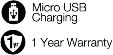 - When battery level is low, charge battery with included micro USB cable to either your computer USB port or compatible wall charger. Low battery level with be indicated with icon Low Battery.