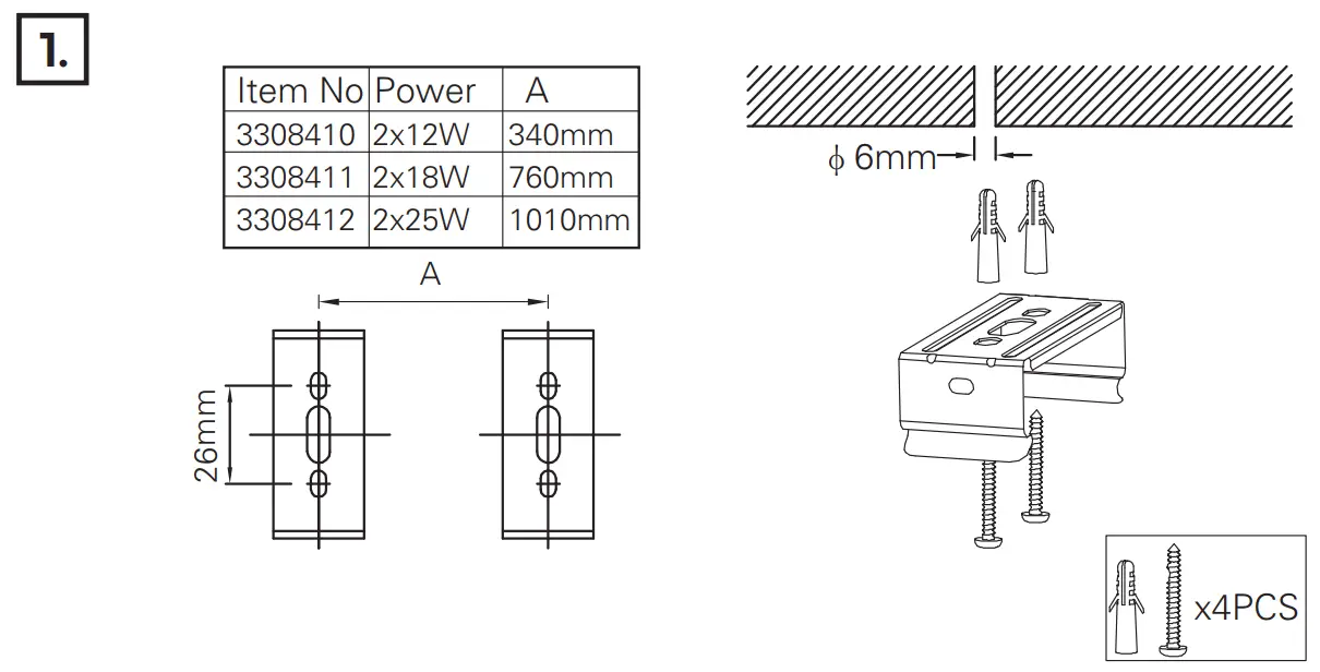 - Installation of fittings should only be done using the included mounting clips. (2 pcs)