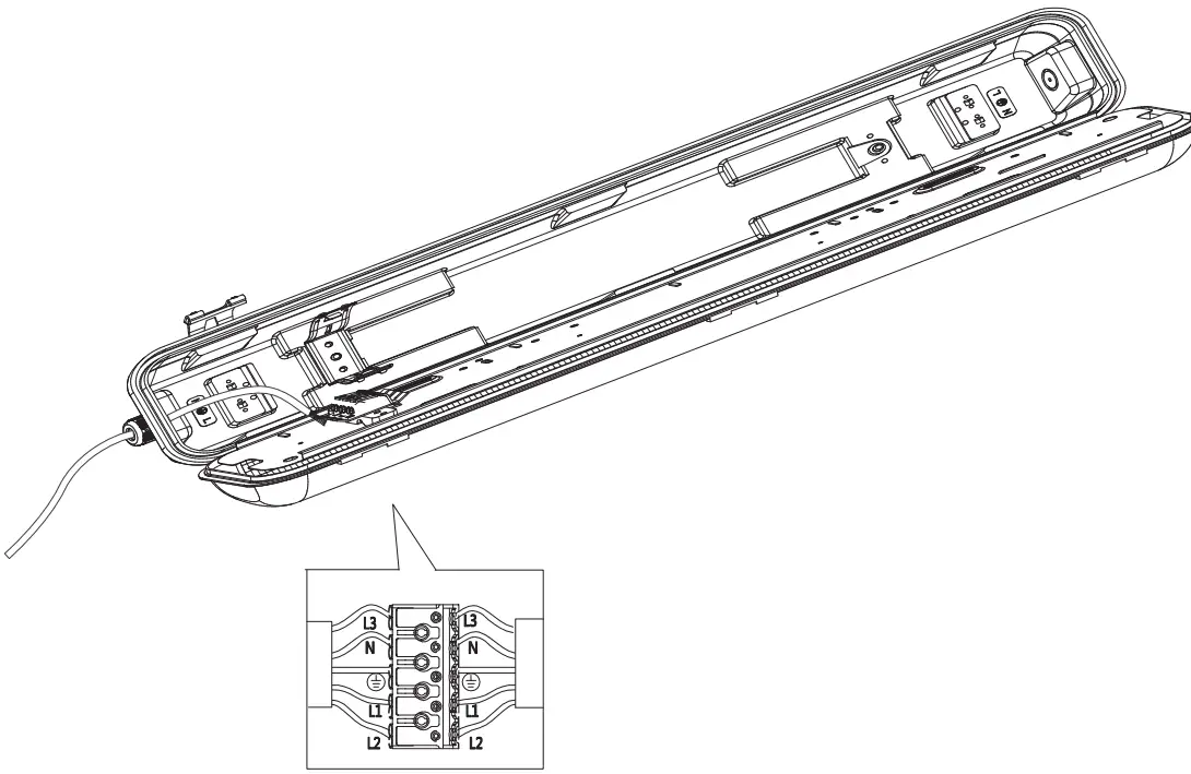 - . NEVER screw directly into the luminaire housing, the construction will deteriorate and IP level will not be maintained.