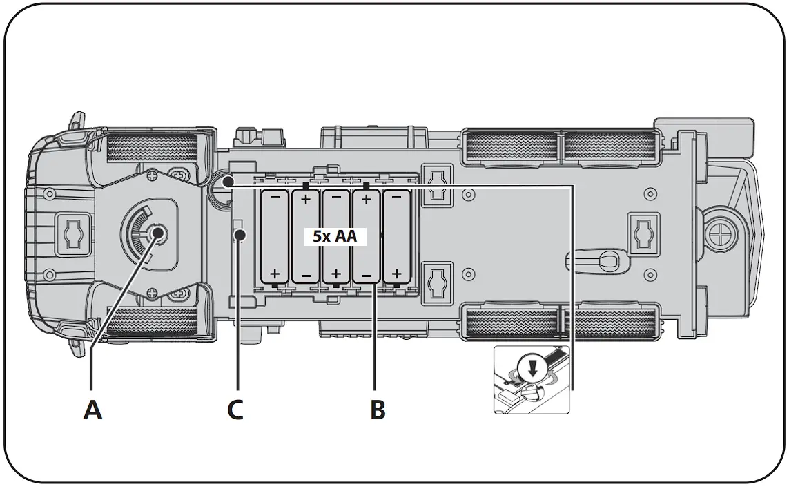 • Fit the 5 x AA batteries, observe the correct polarity.