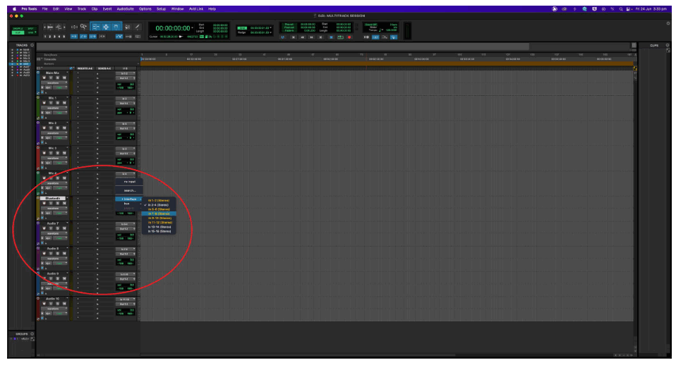 Rename the next track ‘Mic 4’. Ensure that it is a mono track, then select ‘Input 6’ from the input list. The audio from combo input 4 will now be routed to this track.