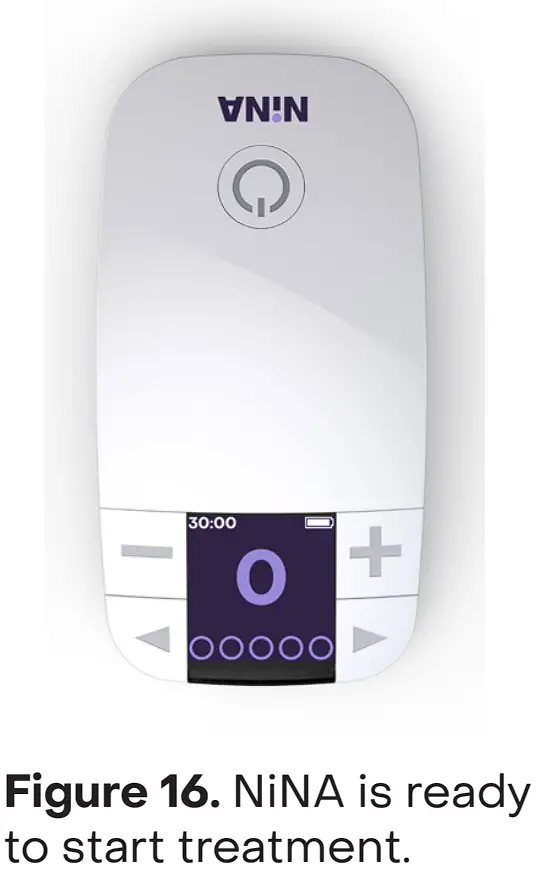 - If the battery status is good and the Pad has not been used more than seven times, NiNA is ready to start treatment and will display the following (Figure 16