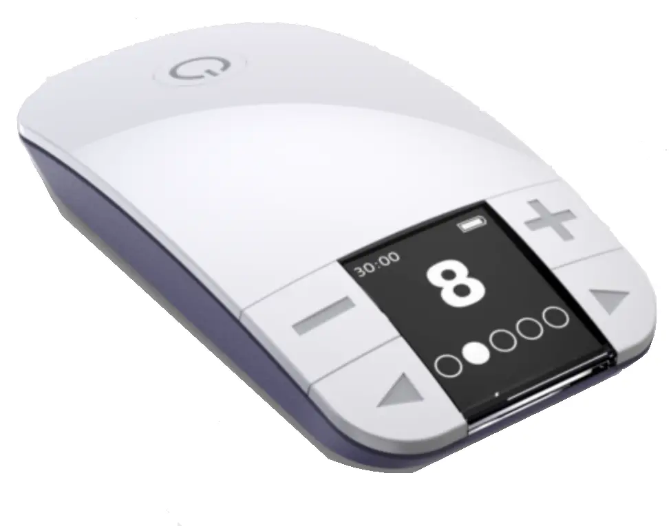 - If at any time during the treatment session the stimulation becomes uncomfortable, press the – button to decrease the stimulation intensity. The stimulation can be turned off by pressing the – button until the stimulation intensity is zero or by holding down the power button until NiNA powers down.