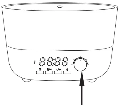 - Adjust knob clockwise to turn on/off mist,and set timer: On/1H/3H/6H