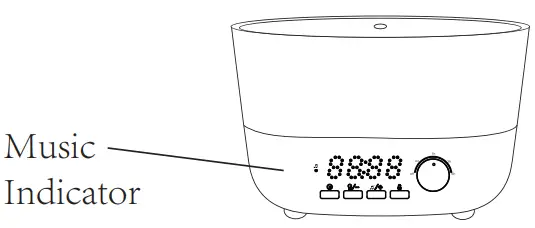- Press music button to turn on/off music, and the music indicator will be on/off accordingly.