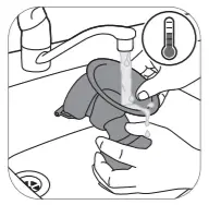 1. Rinse all parts under a running tap with lukewarm water.