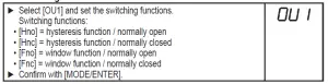 ► Select the output function [Hno] or [Hnc] at [OU1].