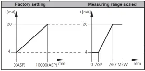 In the set measuring range the output signal is between 4 and 20 mA. Faults are also displayed: