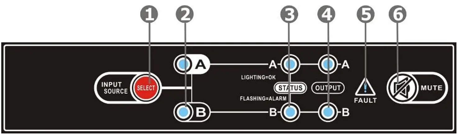 | Priority setting LEDs | Source A (➋) | ON | Source A is priority | OFF |
