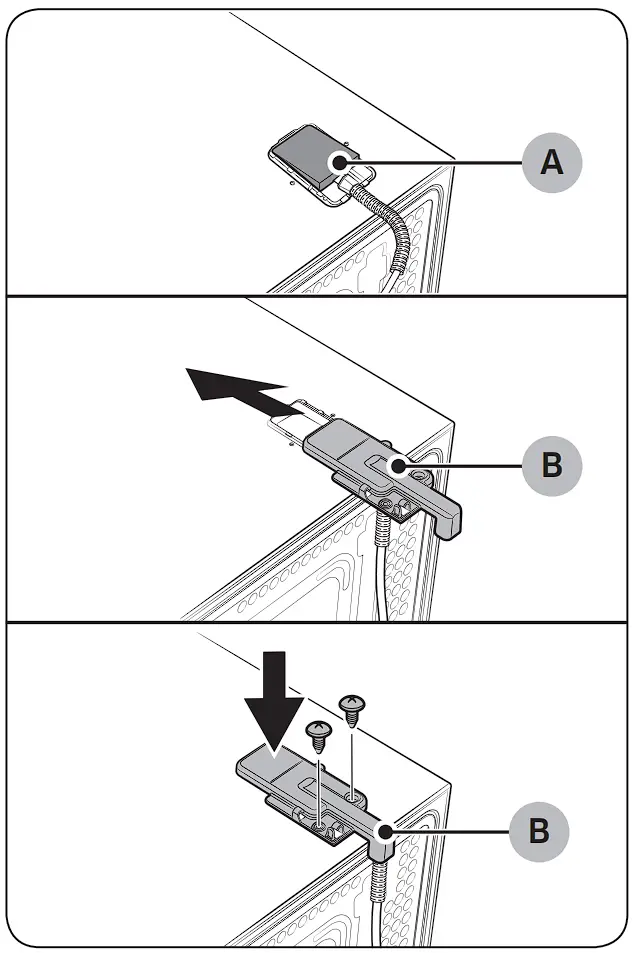 - Insert the ice maker into the front side of the grommets (A) as shown. Then, push the ice maker (B) inwards to the end. To prevent deviation of the ice maker, make sure the ice maker fits into position.