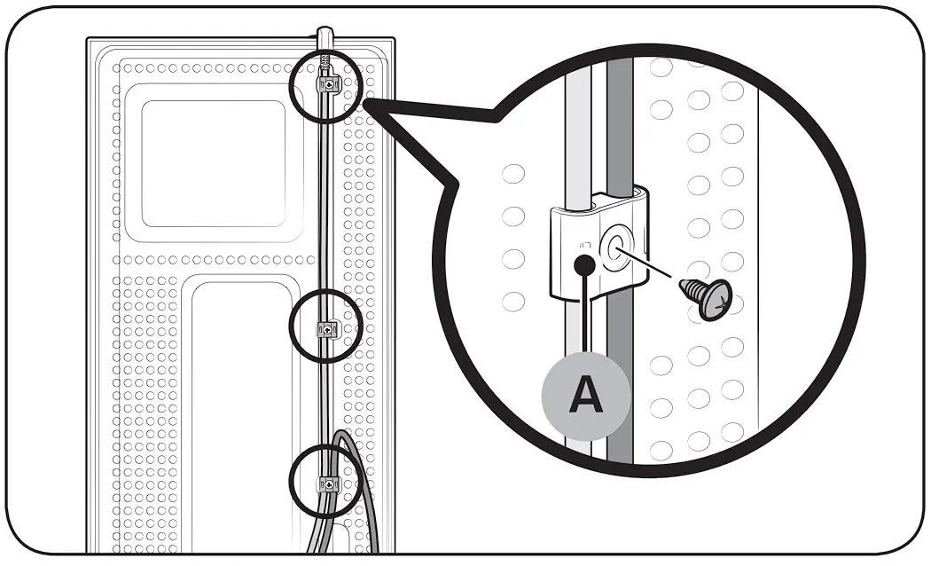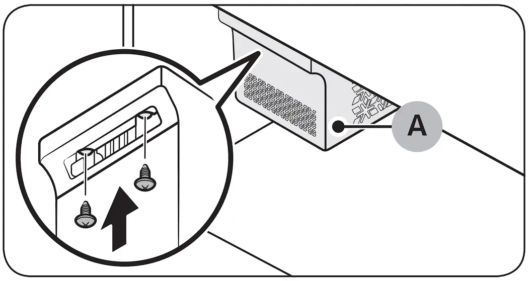 - Tighten the provided screws (x2) to attach the ice maker (A) firmly to the refrigerator.