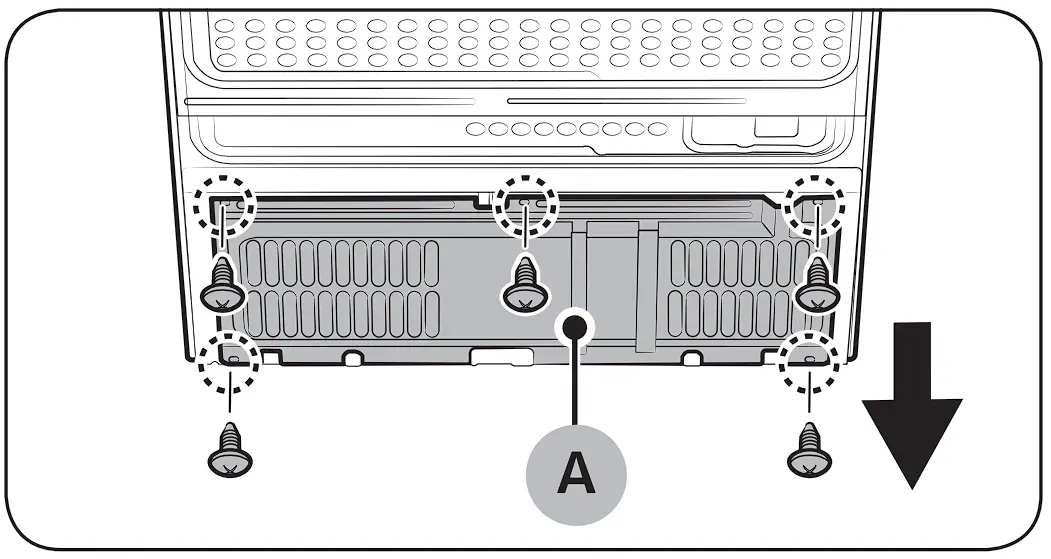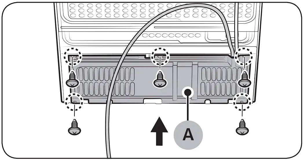- Unscrew the screws to remove the compressor compartment cover (A) at the back of the refrigerator.