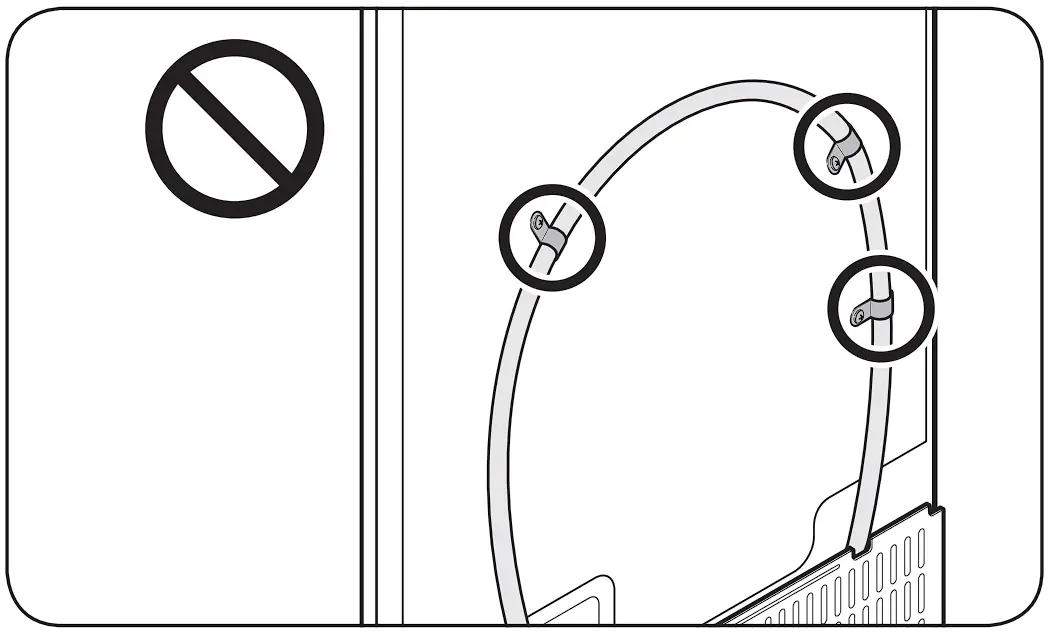 • If the water hose is loose, use a tape to firmly attach it to the back of the refrigerator.