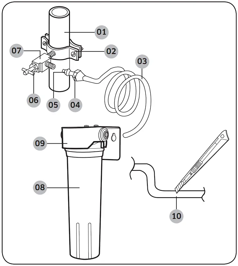 - The filter cartridge is not provided. You must purchase it at a local hardware store.