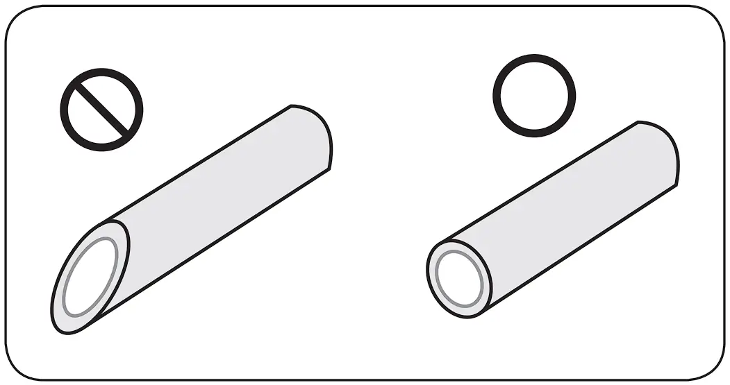 - If cutting the tubing for resizing, make sure the ends of the tubing are vertically clean cut.