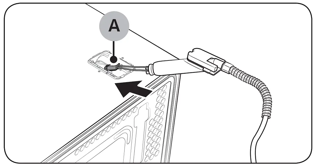 - Connect the wire harness (A) of the ice maker to the left socket in the freezer. Make sure the connector is fully inserted to prevent system failure.
