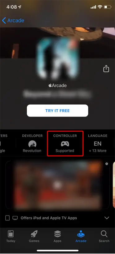 Launch the App Store and navigate to “Arcade”. Games with controller support will have the “Controller Supported” badge.
