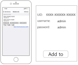 Tap On The Device Listed Under Lan. The Name Should Be “XXXX-XXXXX-XXXXX”(Default User”admin”,Password “admin”).Click“Add To”And Setup The Device Name.