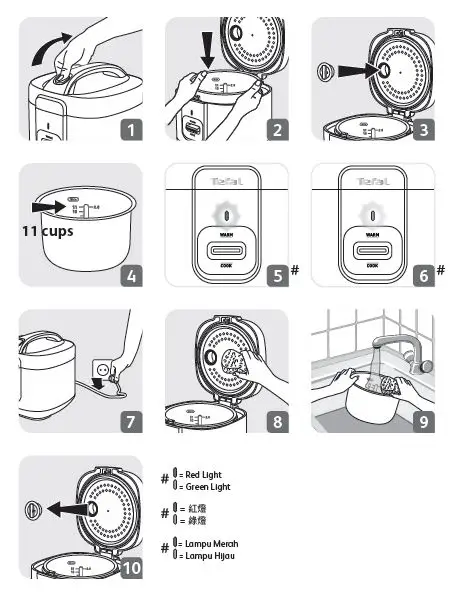 - On completion of cooking, when the light changes to green, stir the rice and then leave it in the rice cooker for a few minutes longer in order to get perfect rice with separate grains.