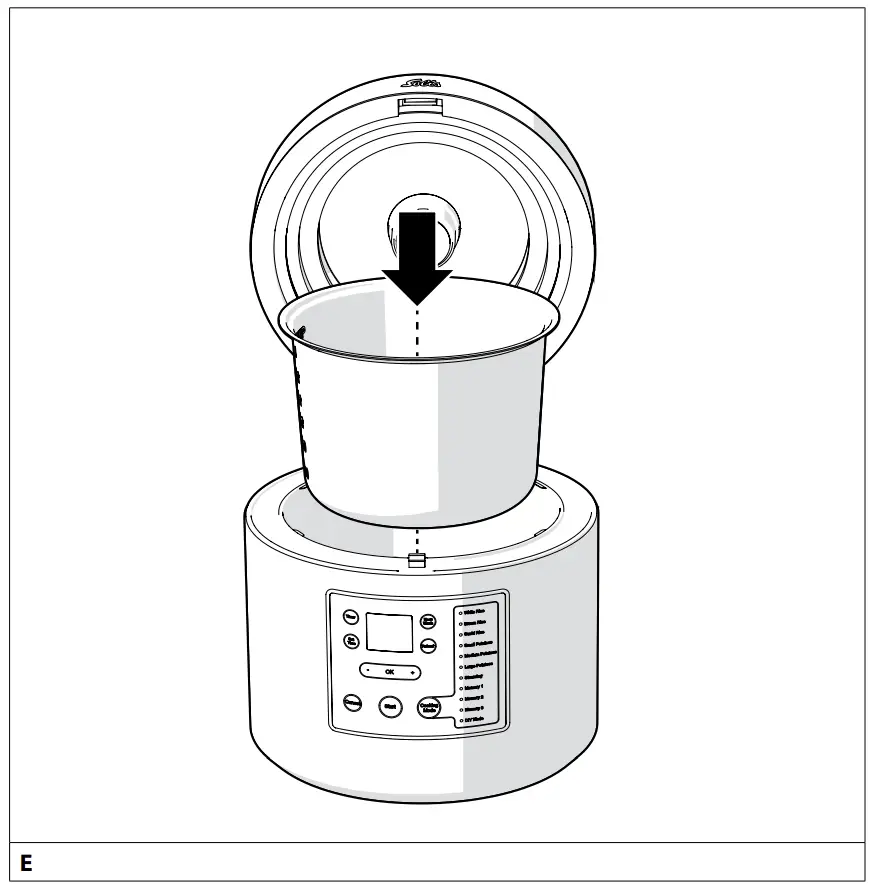 - Never place food directly in the appliance. Always use the cooking pot.