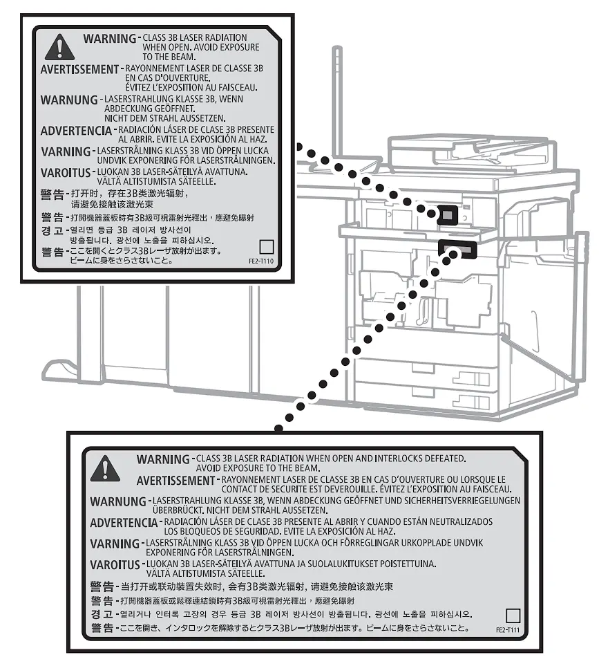 - Never use controls, adjustments or operation procedures other than those stipulated in themanual as doing so could result in exposure to hazardous radiation.