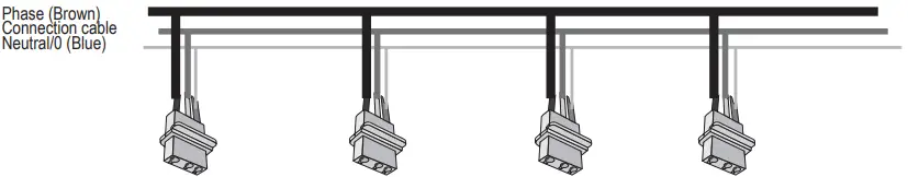 ATTENTION. Do not switch the phase (brown) and 0-(blue) cables. The smoke detector will not function correctly if you do this.