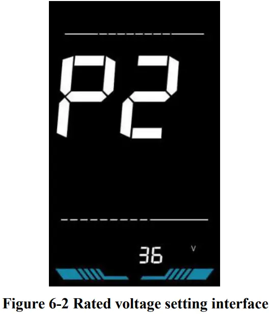 P2 is the rated voltage setting. The available rated voltage range is: 24V, 36V, 48V, 52V.