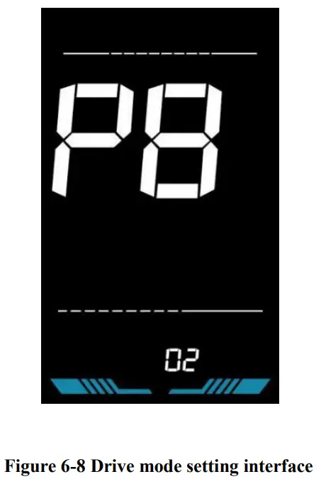 P8 is the drive mode setting. The available drive modes are: 00→Pedal assist only, 01→Electric only, 02→Both Pedal assist and electric.