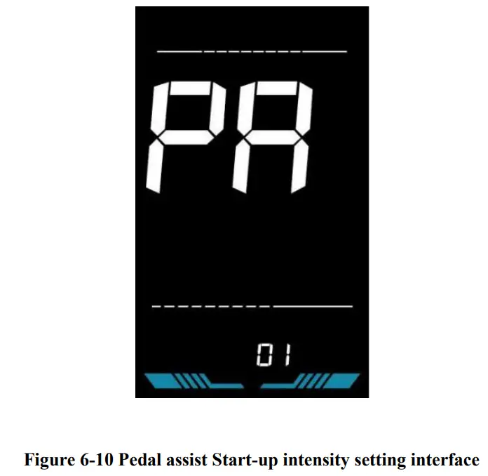 PA is the Pedal assist strength setting. The Pedal assist strength is the relative strength of the PWM signal from the controller when start to activate pedal assist. The adjustable range is 0 ~ 5. 0 is the weakest strength and 5 is the strongest.