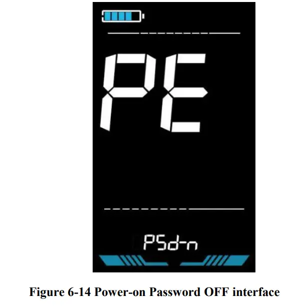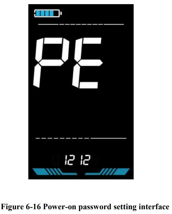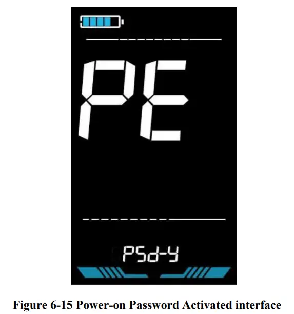PE is the power-on password setting. The power-on password is not activated by default but users can activate it from setting PSd-y. The factory default password is 1212. Users can set other four-digit password. Please keep the password in mind after changing it, otherwise you will not be able to use the display.