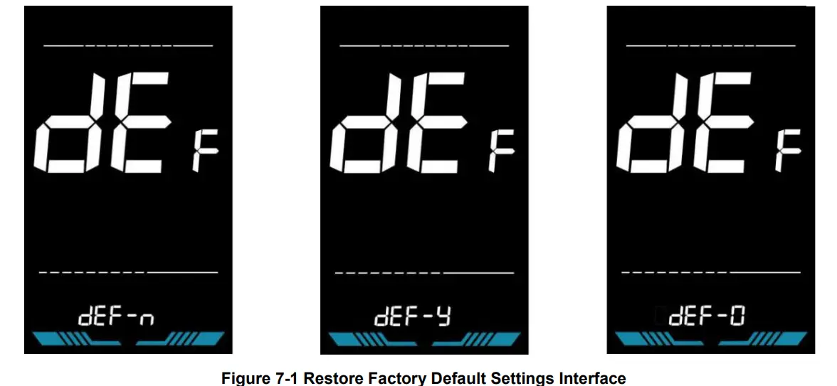 to confirm, the display will show dEF-0 for a few seconds and then automatically start to restore the factory default settings. The display will automatically exit to setting interface after the restoration.
