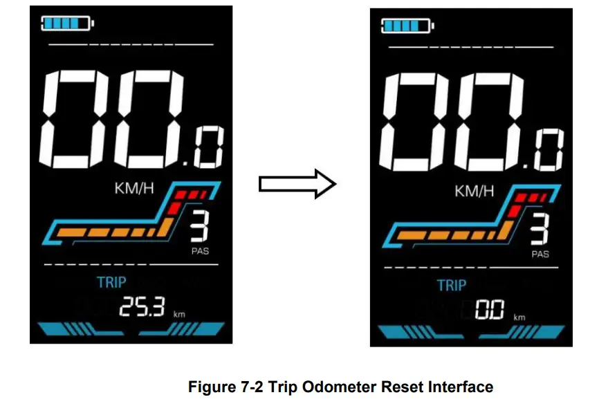 simultaneously for 2s to reset the trip odometer. The main interface will flash during the reset process.