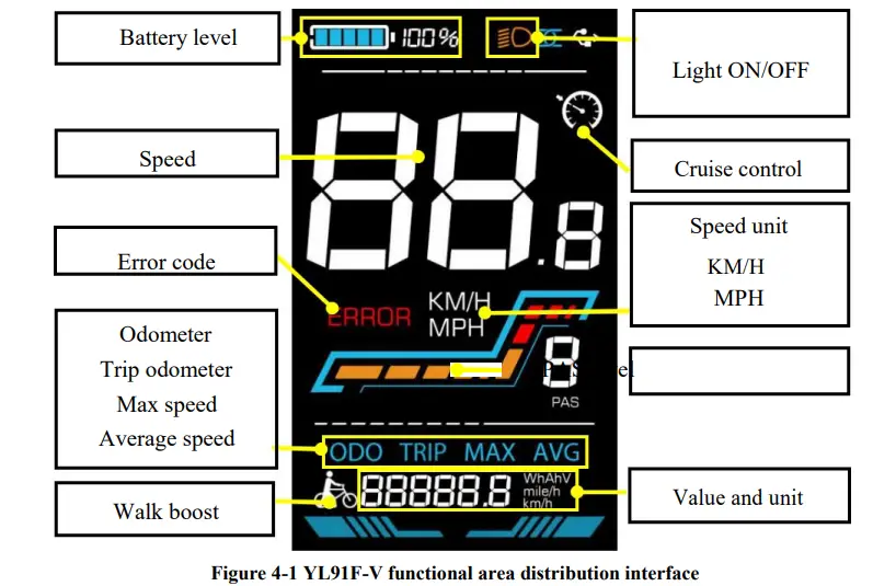 The YL91F-V display offers a variety of features to suit your riding needs, including