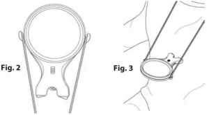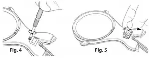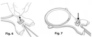 Place strap around neck and adjust length as desired. Loop strap under hooks on each side of magnifier rim. Rest rubber tips on bottom of magnifier against chest (Fig. 2-3).