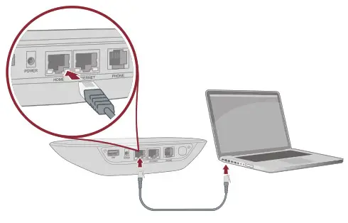 Use your Ethernet cable to connect a computer to the HOME NETWORK port of your Ooma device.