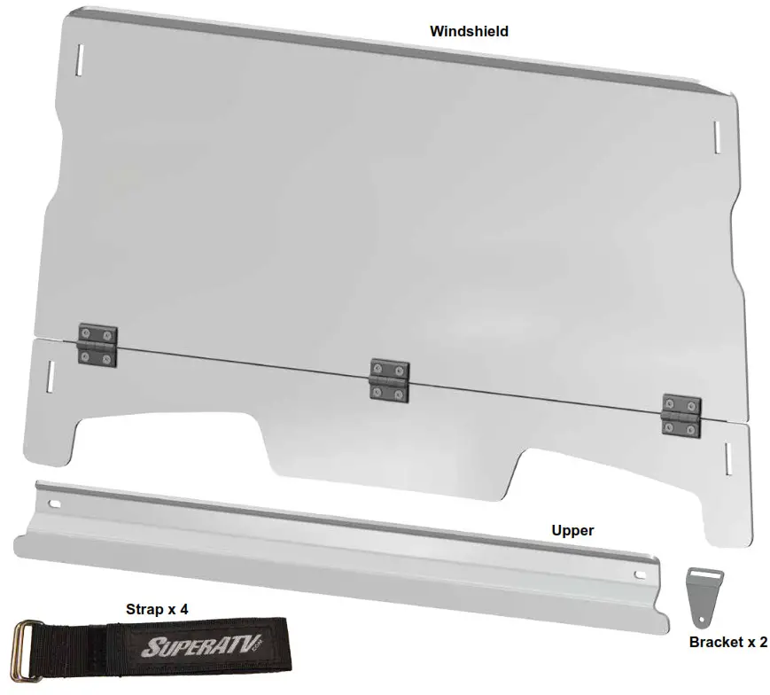 – SuperATV does not recommend keeping a Windshield installed while transporting on an open-air trailer. Remove or secure with straps.