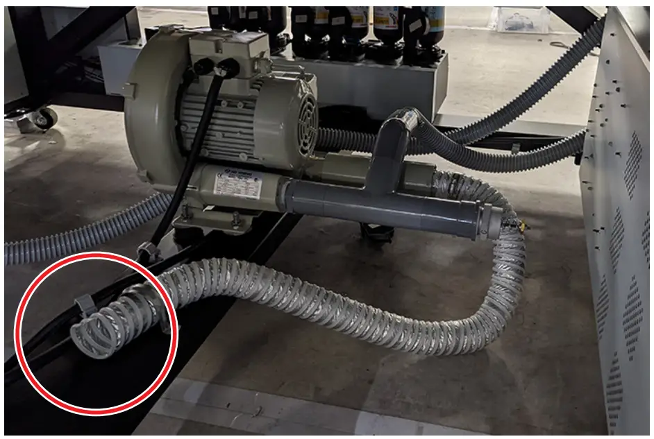 | - Avoid touching the relief valve (pressure regulating valve) or blocking the exhaust port of the vacuum unit (immediately below the table). Doing so may reduce the vacuum strength or cause abnormal heat generation or failure of this machine.