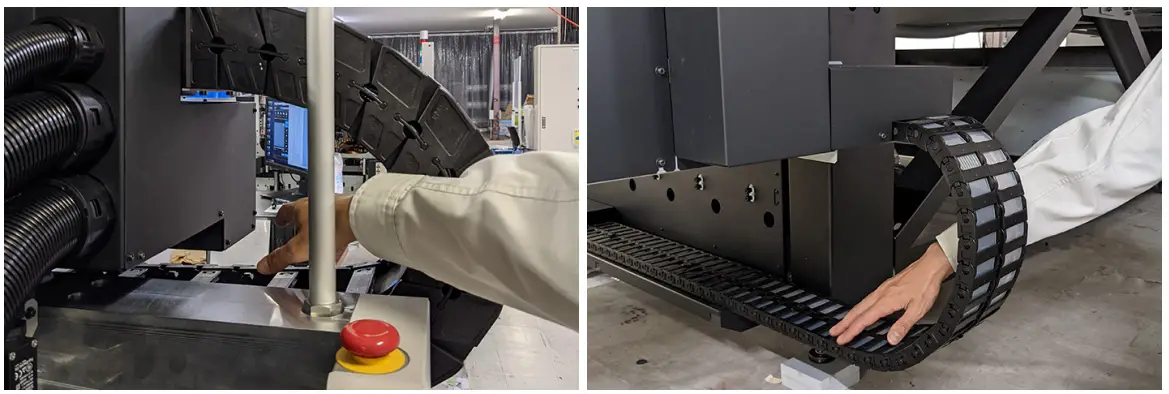 - Keep your face, hands, and all other body parts at a safe distance from the cable carrier section.