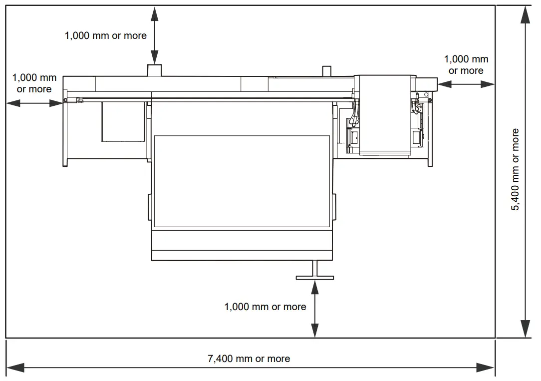 - Do not install this machine in locations subject to sudden temperature changes. This will increase the risk of failure or printing defects (e.g., nozzle clogging, deflection).