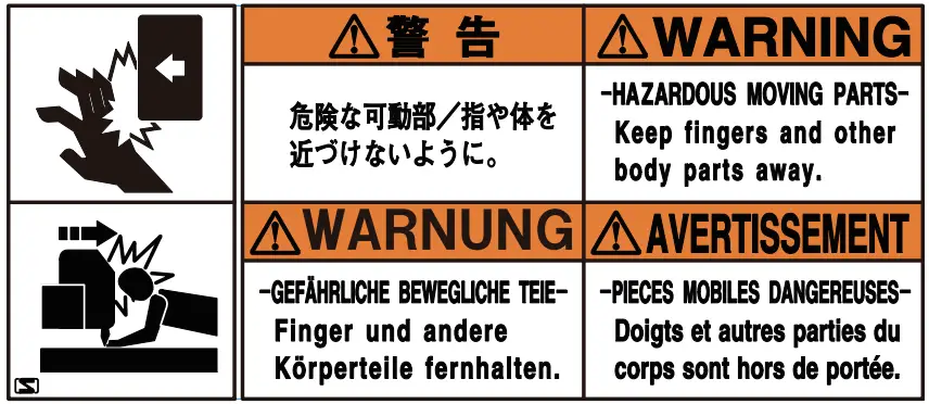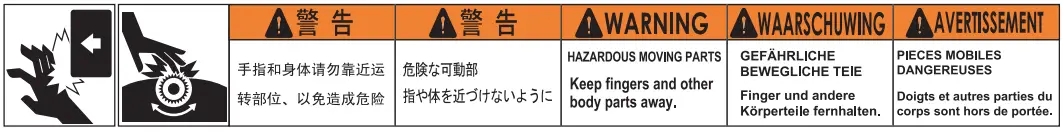 - Caution regarding moving parts