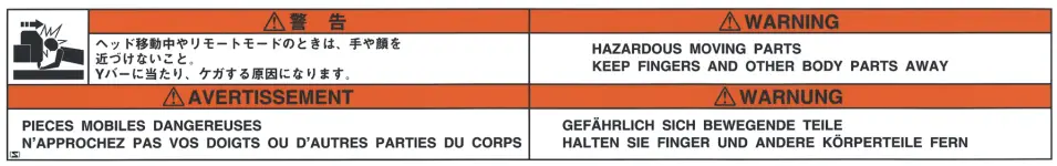 | - Do not bring your face, hands, or any other part of your body close to or into the gap between the carriage and Y-bar.