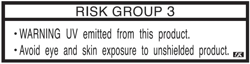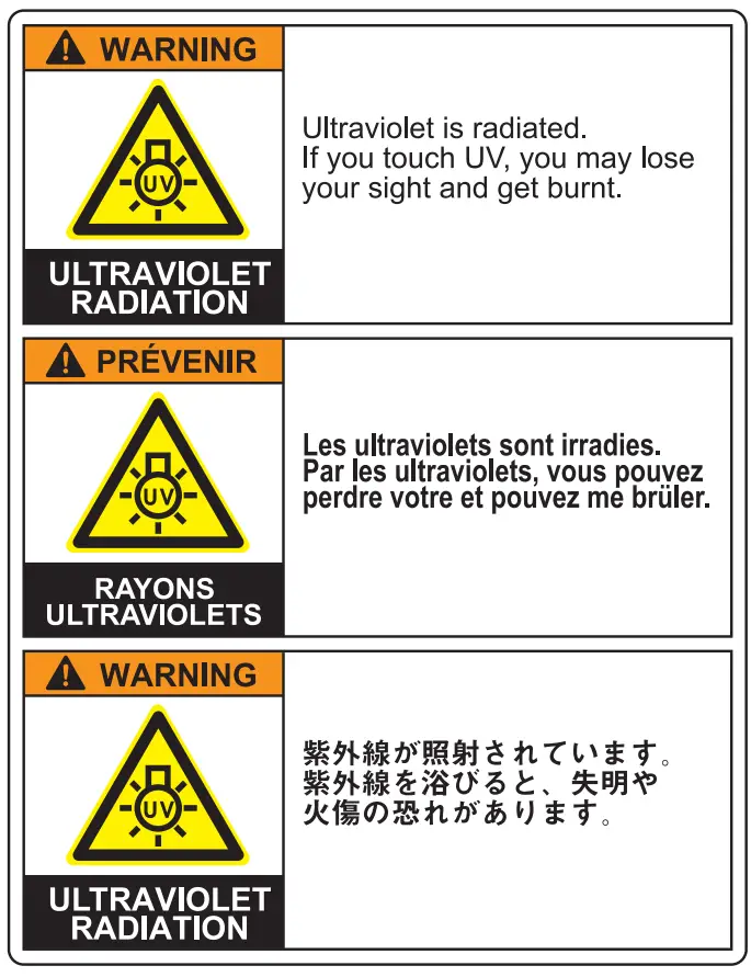 | - Be sure to use the UV safety glasses provided. Disregarding this precaution may result in eye pain or damage to eyesight.